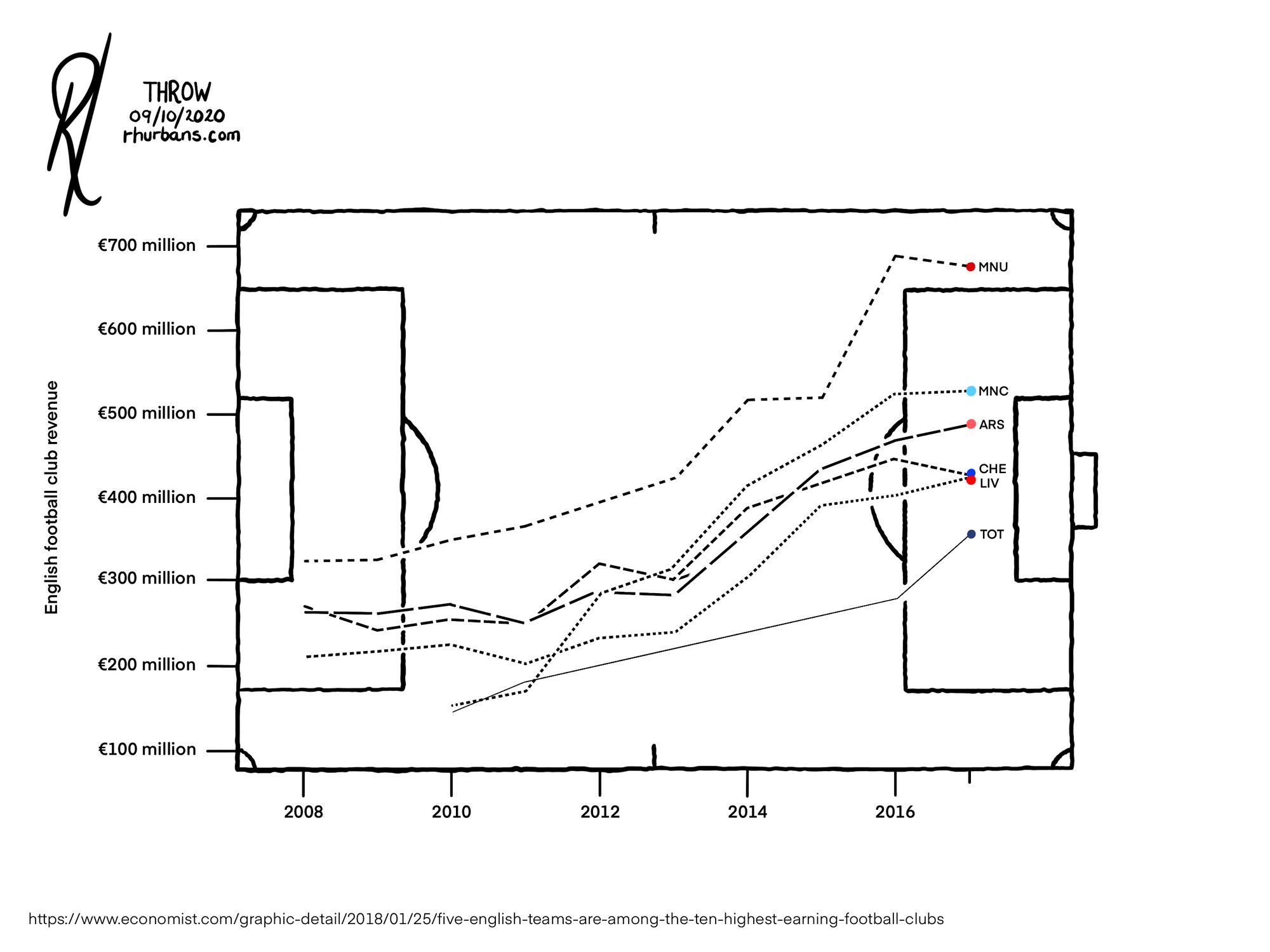 Day 9: Throw - The value of English football clubs over time