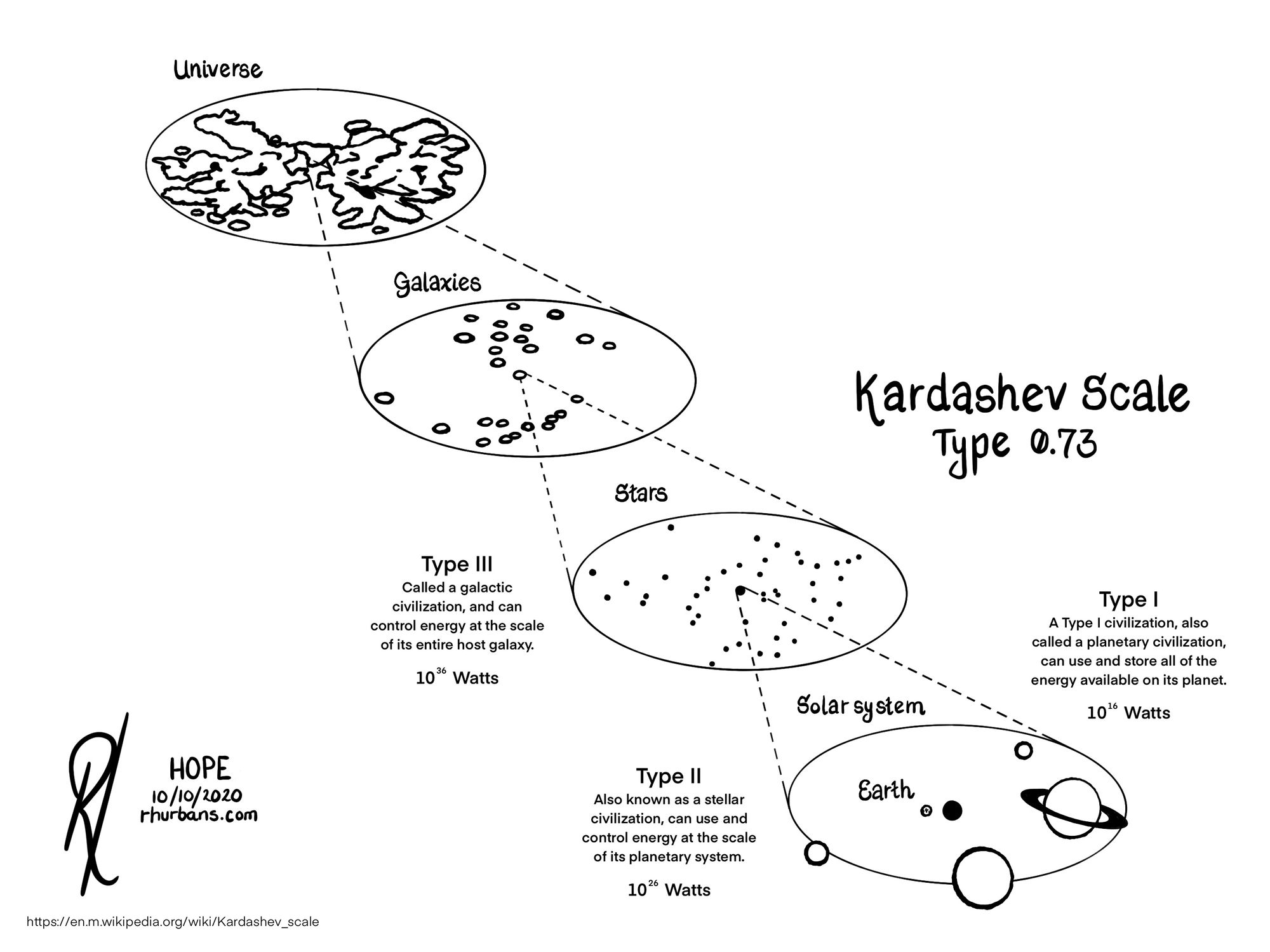 Keeping up with the Kardashev Scale. The scale is a measure of a civilisation's technological advancement based on the amount of energy that they're able to control. We're currently a type ±0.73 civilisation.