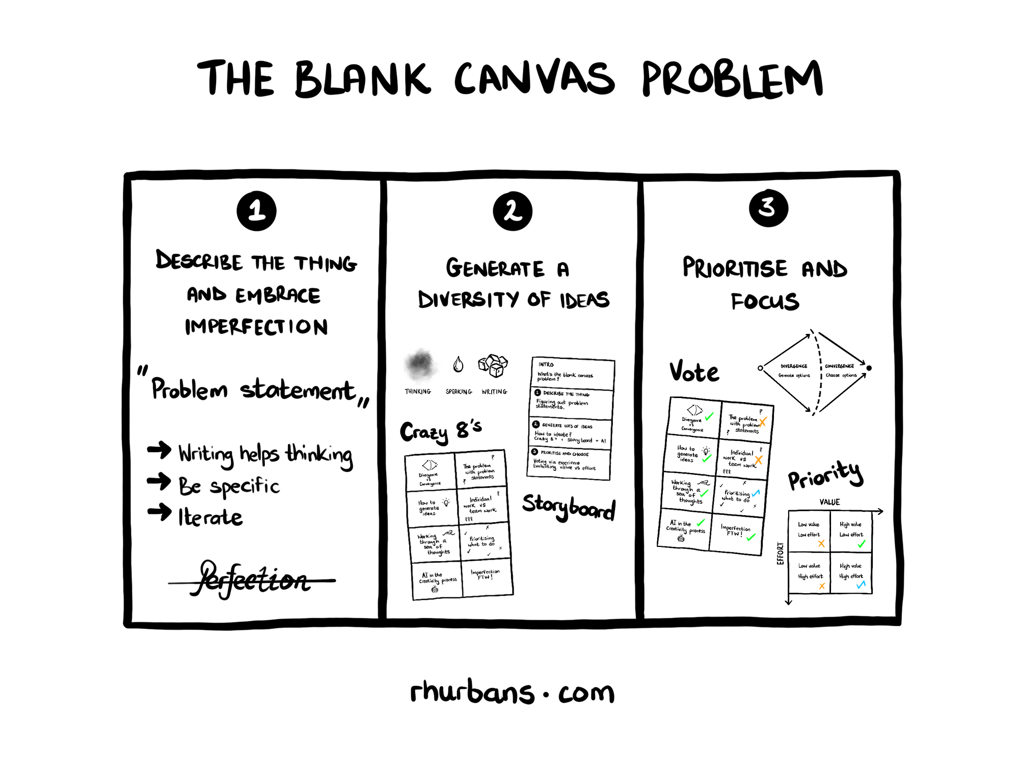 How can we relieve the anxiety, get things done, and conquer the blank canvas problem? Let's explore three approaches - many I've used to write this very article.
